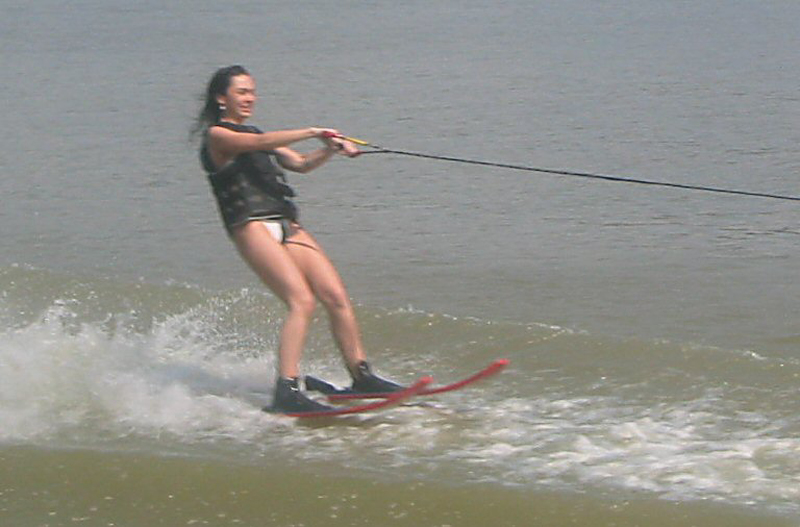 Andrea zipping past on the skis